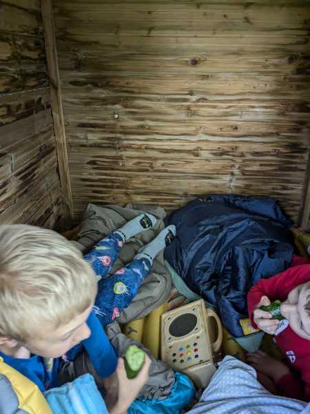 Der Umzug des Spielhauses (auf Stelzen) von den Nachbarn zu uns. Und wie es bei solchen Aktionen häufig ist, hat es dann doch mehr Zeit in Anspruch genommen als geplant. Hat sich aber gelohnt: es wird viel bespielt und die Kinder haben auch schon darin übernachtet.
