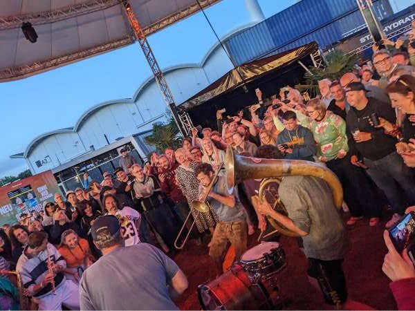 Dort spielte LaBrassBanda. Textsicher bin ich bei weitem nicht (es wird bayrisch gesungen, selbst wenn ich es verstehe, kann ich es nicht nachsingen), aber das ist auch ganz egal, denn die Musik geht vom Ohr direkt in die Beine.